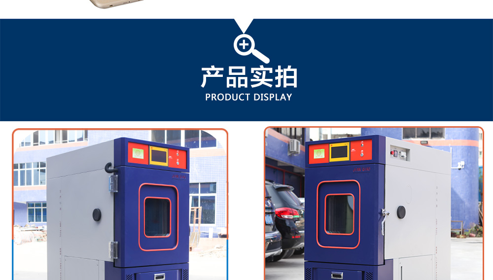 用途:新款 恒溫恒濕試驗箱(JQTH-100L),主要用來測試各種材料耐熱、耐寒、耐干、耐濕的性能。本機采用中英俄文顯示彩色觸控式屏幕畫面,操作簡單,程序編輯容易可顯示完整的系統操作狀