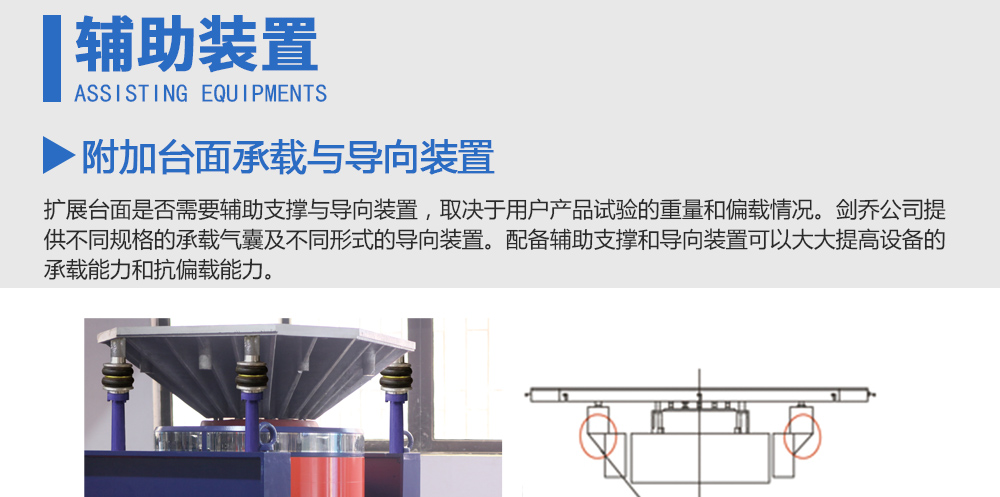 產(chǎn)品型號(hào): 品牌:劍 喬 用途:擴(kuò)展臺(tái)面是否需要輔助支撐與導(dǎo)向裝置,取決于用戶產(chǎn)品試驗(yàn)的重量和偏載情況。劍喬公司提供不同規(guī)格的承載氣囊及不同形式的導(dǎo)向裝置。配備輔助支撐和導(dǎo)向裝置可以大大提高設(shè)備的承載能咨詢熱線:13829135130
